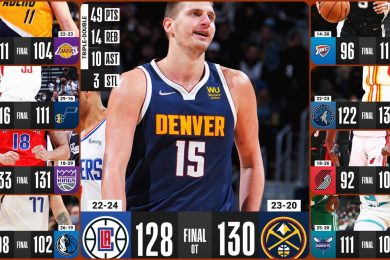 Denver je pobedio oslabljene Kliperse nakon produžetka u pravom trileru koji je na kraju odlučila čista genijalnost Nikole Jokića koji je genijalnim pasom spojio Erona Gordona sa loptom i njegova trojka na kraju je donela pobedu rezultatom 130:128. Jokić je promašio šut za pobedu u regularnom delu, upisao je monstruozni tripl dabl sa 49 poena, […]