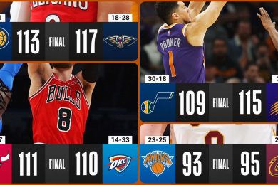 Finiks je pobedio Jutu rezultatom 115:109 i potvrdio status apsolutnog lidera NBA lige, sa ukupno 37 pobeda i 9 poraza, a ova utakmica bila je potpuno neizvesna do samog kraja. Juta se vratila iz dvocifrenog minusa, preuzela vođstvo u trećoj četvrtini, ali je ekipa Finiksa predvođena sjajnim Devinom Bukerom koji je večeras upisao 33 poena, […]
