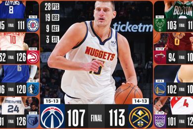 Nikola Jokić ponovo je nosio svoj tim do pobede, ovoga puta savladali su Vašington rezultatom 113:107, a ovom pobedom tim iz Kolorada je upisao četrnaestu pobedu ove sezone i krenuo ka plej of zoni Zapada. Jokićev učinak bio je ponovo na ivici tripl dabl brojeva, upisao je 28 poena, čak 19 skokova i 9 asistencija, […]