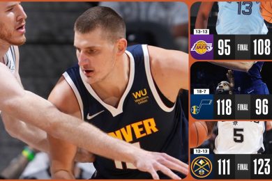 Denver je ubedljivo pobedio San Antonio rezultatom 127:112 uz još jednu monstruoznu partiju Nikole Jokića, koji je upisao 35 poena, 17 skokova i 8 asistencija, praktično za tri četvrtine ove utakmice, pošto je već na početku četvrte četvrtine Denver imao 29 poena razlike i pobeda je bila praktično obezbeđena. Jako važna pobeda za Denver koji […]