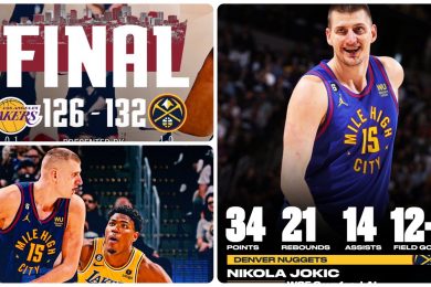 Nikola Jokić upisao je istorijski tripl dabl sa 34 poena, 21 skokom u 14 asistencija u na kraju neočekivano tesnoj pobedi Denvera nad Lejkersima rezultatom 132:126. Jokićeva nestvarna partija u prvom poluvremenu, u kome je samo u prvoj četvrtini imao čak 12 skokova, kreirala je neku vrstu iluzije o nedoraslosti Lejkersa i apsolutnoj dominaciji Denvera, […]